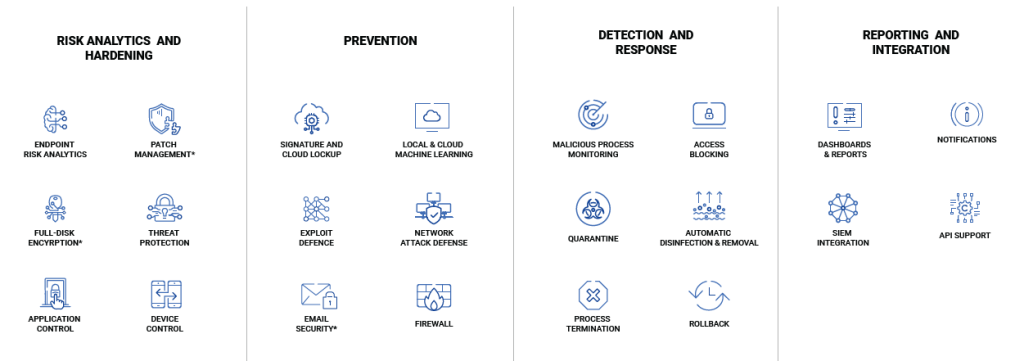 🔹 Next-generation threat prevention. Using machine learning, behavioural analytics, and artificial intelligence to catch both known and unknown threats before they execute.